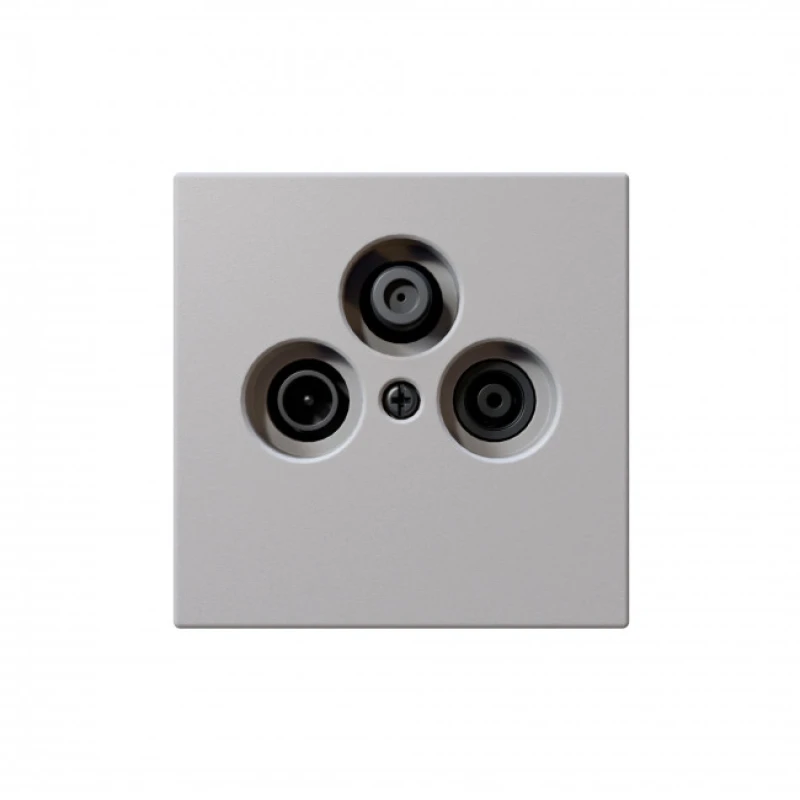 Розетка TV+FM+SAT ?9.5mm проходная с накладкой, цвет Белый матовый (soft touch)